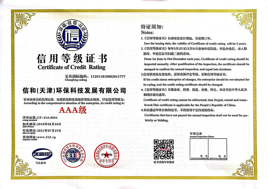 以“專業、誠信、創新、環?!睘楹诵睦砟睢I從事環保設備研發的生產型高新企業,為客戶提供專業的環保設備。擁有《中華人民共和國進出口資格證》和《中國環境保護產品認證證書》。產品通過ISO9001質量管理體系認證、ISO4110環境管理體系認證、ISO18001職業健康管理體系認證。